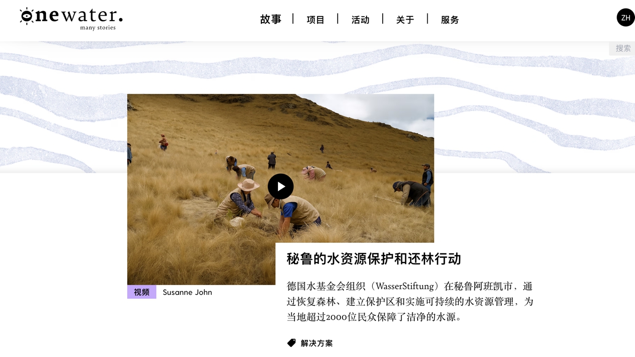 藍色,不僅是科技的顏色,更是地球生命之源的象征。它代表著(zhù)我們共同的責任。Onewater.blue是一家聚焦全球水資源保護的平臺,就將這份使命感深深地烙印在了自己的數字身份上。這個(gè)平臺匯集了從秘魯森林恢復到蒙古牧民水源改善的眾多真實(shí)案例,倡導著(zhù)全球生態(tài)協(xié)作。